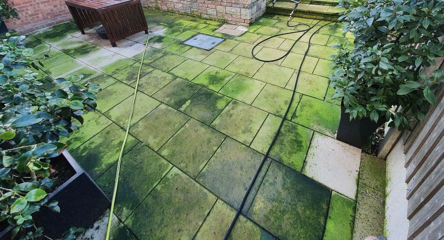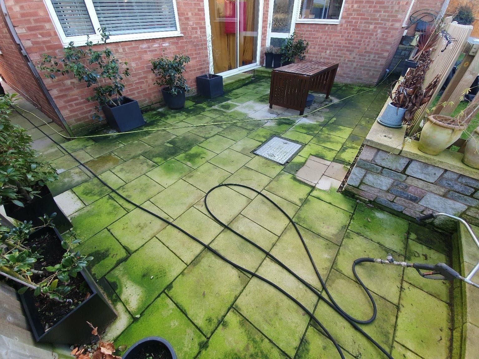“Jet washing removes years of dirt, algae, and staining to bring your patio back to its original colour and make it safer to walk on.”